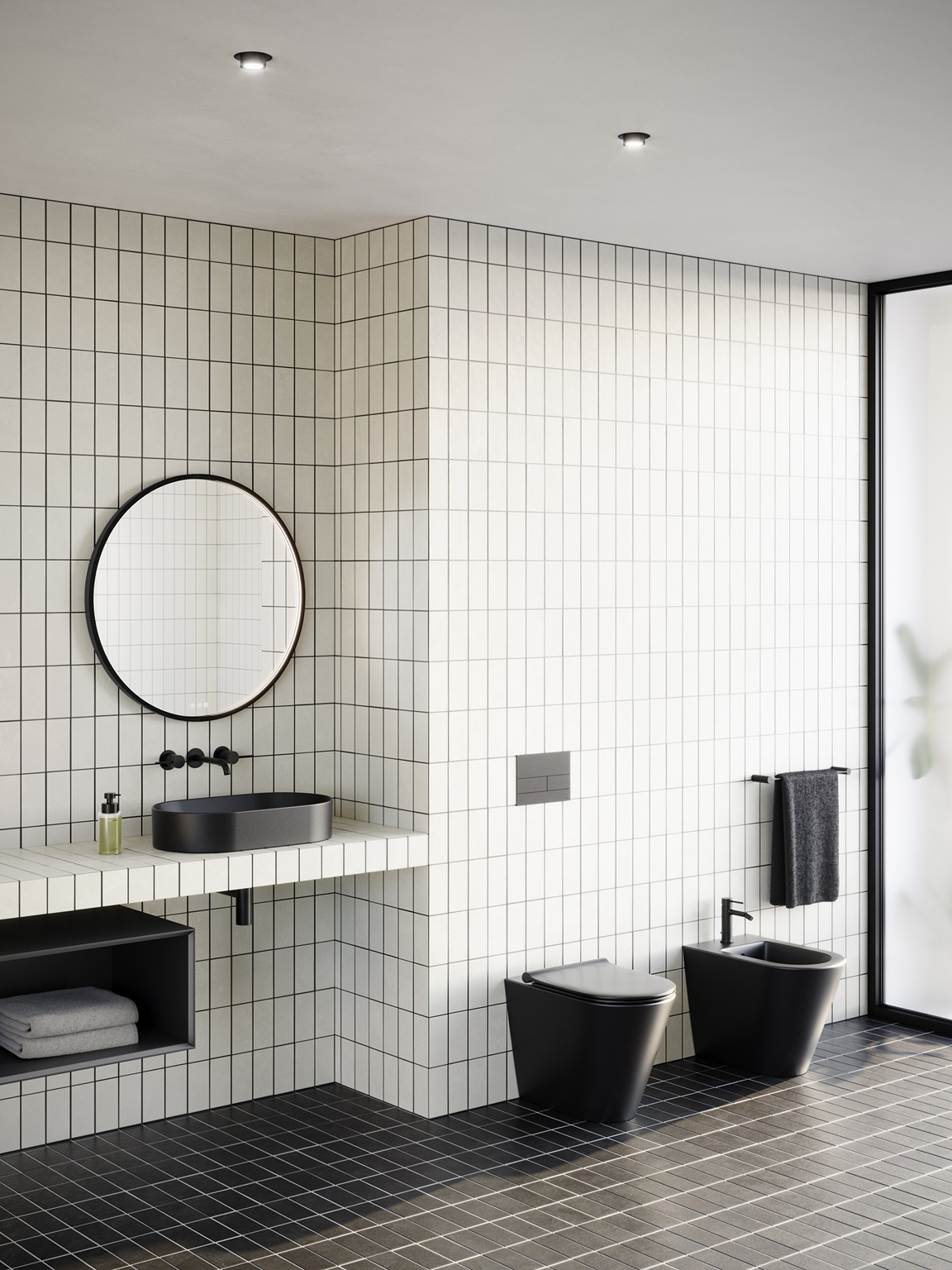 Kolekcja umywalek Zero dostepna jest w kilku wykończeniach inspirowanych pięknem natury. Od eleganckiego odcienia beżu po delikatność bieli, od jadeitowej zieleni po głębię czerni, kolory te przywołują poczucie spokoju i prostoty, harmonijnie komponując się z każdym typem wystroju wnętrza. Naturalne kolory dobrze komponują się z różnorodnymi materiałami, takimi jak drewno, kamień i metal, zapewniając nieograniczone możliwości kombinacji.