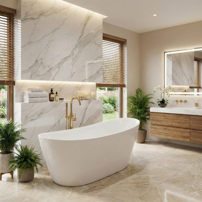 Corsan ESTELLA II to wolnostojąca wanna, która w swojej formie łączy minimalistyczny design z elegancją klasycznych detali. Smukły rant typu slim sprawia, że wanna prezentuje się niezwykle lekko, a proporcje 170 × 74 cm gwarantują przestrzeń do komfortowych kąpieli. Jej bryła została starannie wyprofilowana, aby ciało mogło przyjąć wygodną pozycję, a smukłe krawędzie dodają całości lekkości. Monolityczna konstrukcja bez widocznych łączeń wygląda elegancko i nowocześnie, a jednocześnie jest praktyczna – łatwa w utrzymaniu czystości i wyjątkowo trwała.
