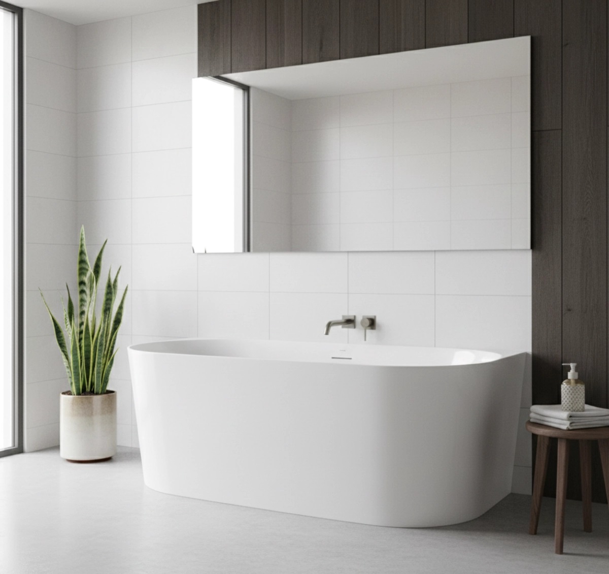 Wanna przyścienna Corsan MONO V029 Slim powstała dla tych, którzy chcą maksymalnego komfortu bez zajmowania całej przestrzeni. Jej minimalistyczna forma nie przyciąga krzykiem – zachwyca spokojem, równowagą i czystością wzornictwa. Staje się naturalną częścią łazienki, ale nie znika z pola widzenia. Zawsze tam, gdzie potrzeba chwili oddechu, ciszy i momentu tylko dla siebie. To rozwiązanie, które idealnie sprawdza się w nowoczesnych aranżacjach, w łazienkach o dowolnym metrażu – od kameralnych do naprawdę przestronnych. Przyścienna konstrukcja pozwala ustawić wannę blisko ściany, co ułatwia aranżację wnętrza i daje więcej swobody na ruch, przechowywanie czy prysznic.