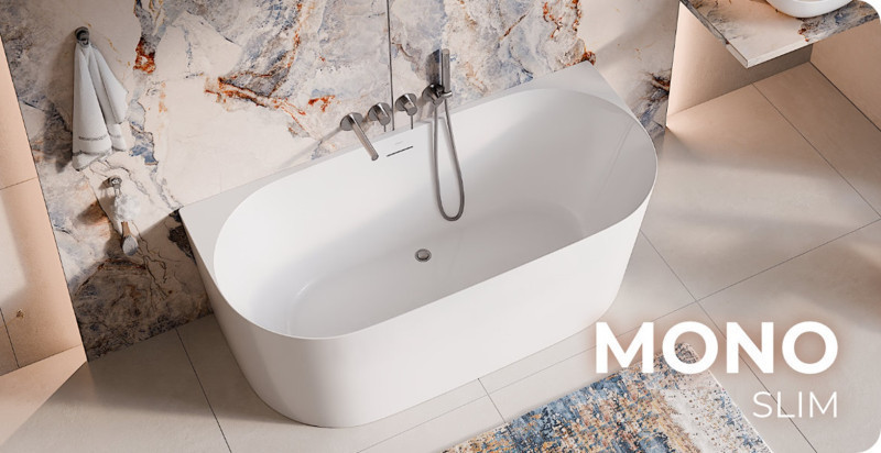 W MONO V029 Slim zachwycają szczegóły. Przelew szczelinowy subtelnie wtapia się w bryłę wanny, rezygnując z tradycyjnej maskownicy. Dzięki temu linia pozostaje nieskazitelnie czysta – nic nie wybija się z rytmu wzornictwa, niczego nie trzeba ukrywać. Technologia działa, a estetyka pozostaje nienaruszona. Korek klik–klak przy ściance jest jak biżuteria minimalistycznej kompozycji. Przelew szczelinowy subtelnie wtapia się w bryłę wanny, rezygnując z tradycyjnej maskownicy. Dzięki temu linia pozostaje nieskazitelnie czysta – nic nie wybija się z rytmu wzornictwa, niczego nie trzeba ukrywać.