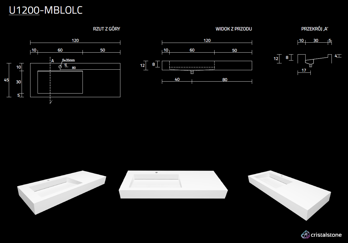 Ta delikatna umywalka o eleganckim wykończeniu posiada nietypowy, liniowy odpływ centralny, asymetrycznie usytuowany blat oraz satynowo matowy połysk.Wyjątkowo estetyczne, odporne na uszkodzenia i bezpieczne dzięki technologii umywalki możliwe są do osiągnięcia dzięki unikatowemu połączeniu najlepszych cech ceramiki i kompozytu w materiale Cristalstone. Dodatkowo, wszystkie umywalki od Cristalstone posiadają atest bezpieczeństwa PZH oraz certyfikat jakości CE. Funkcjonalizm oraz wysoka jakość to jedne z głównych cech tych umywalek. Ułatwia to wybór, czym je wyczyścić - blat i misa umywalkowa są łatwe w utrzymaniu i można je czyścić popularnymi środkami czystości o neutralnym pH.