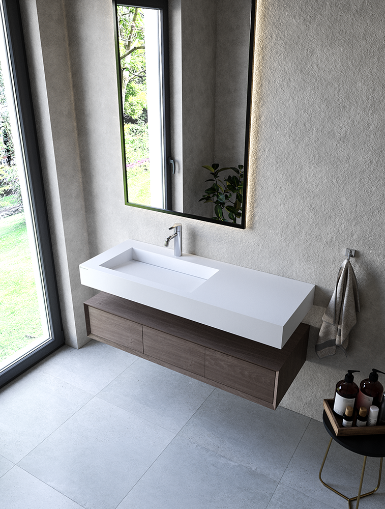 Najwyższej jakości nowoczesny konglomerat łączący cechy ceramiki i kompozytów sanitarnych. Materiał, który wygląda i zachowuje się w dotyku jak ceramika, jednak jest od niej bardziej wytrzymały mechanicznie.