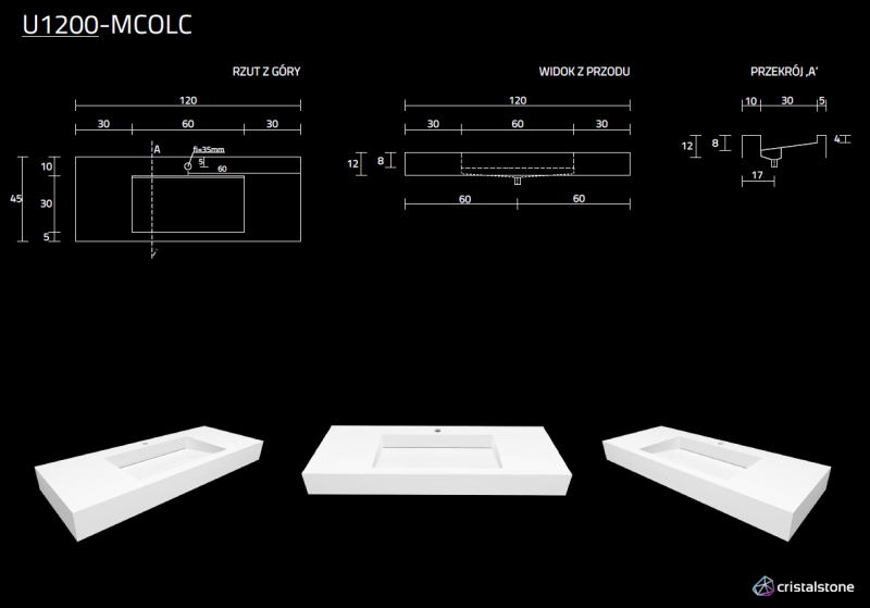 Najwyższa jakość produktu oraz komfort użytkowania dostępne są wyłącznie dzięki nowoczesnej technologii Cristalstone, dzięki której możliwe jest uzyskanie pięknego wyglądu wraz z trwałością i wartością użytkową. Długa biała umywalka łazienkowa jest zarówno estetycznym dodatkiem, jak i praktycznym meblem - na blacie położyć można przybory oraz kosmetyki. W połączeniu z wysoką odpornością na czynniki zewnętrzne, design umywalek stanowi najjaśniejszy punkt pomieszczenia i jest gwarantem idealnego efektu.