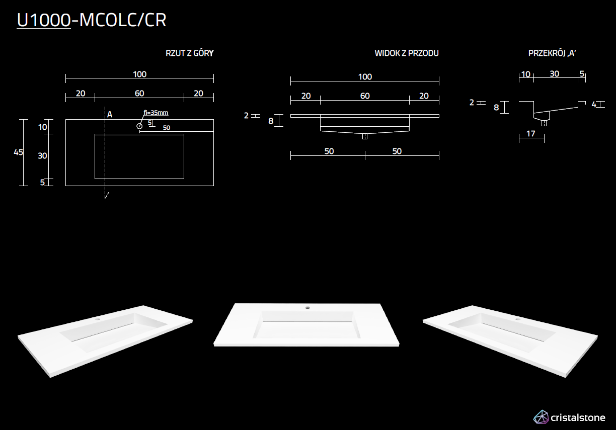 Cristalone Linea Ideal umywalka meblowa z odpływem liniowym
