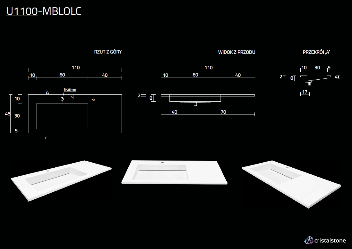 Cristalone Linea Ideal umywalka meblowa z odpływem liniowym