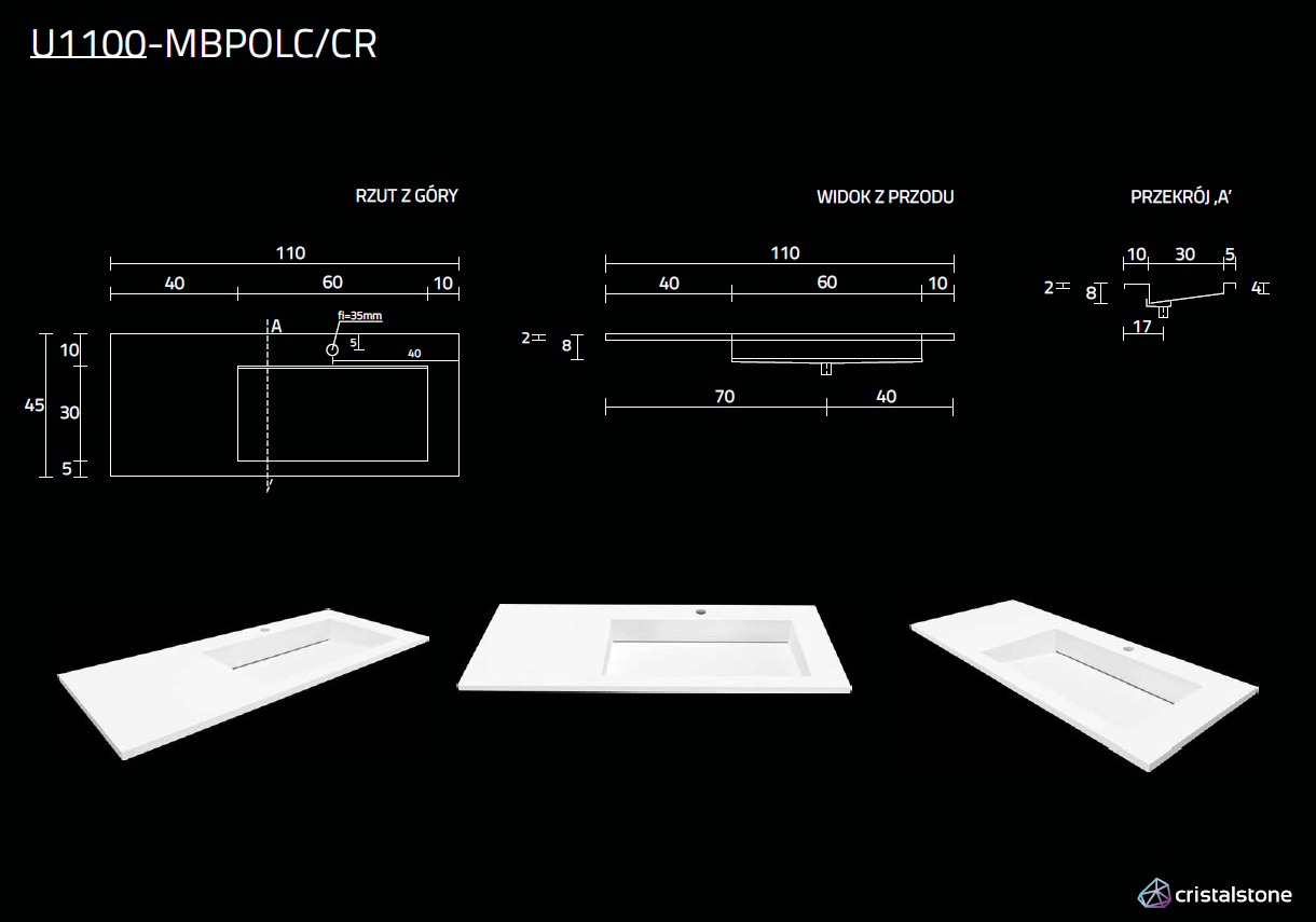 Cristalone Linea Ideal umywalka meblowa z odpływem liniowym