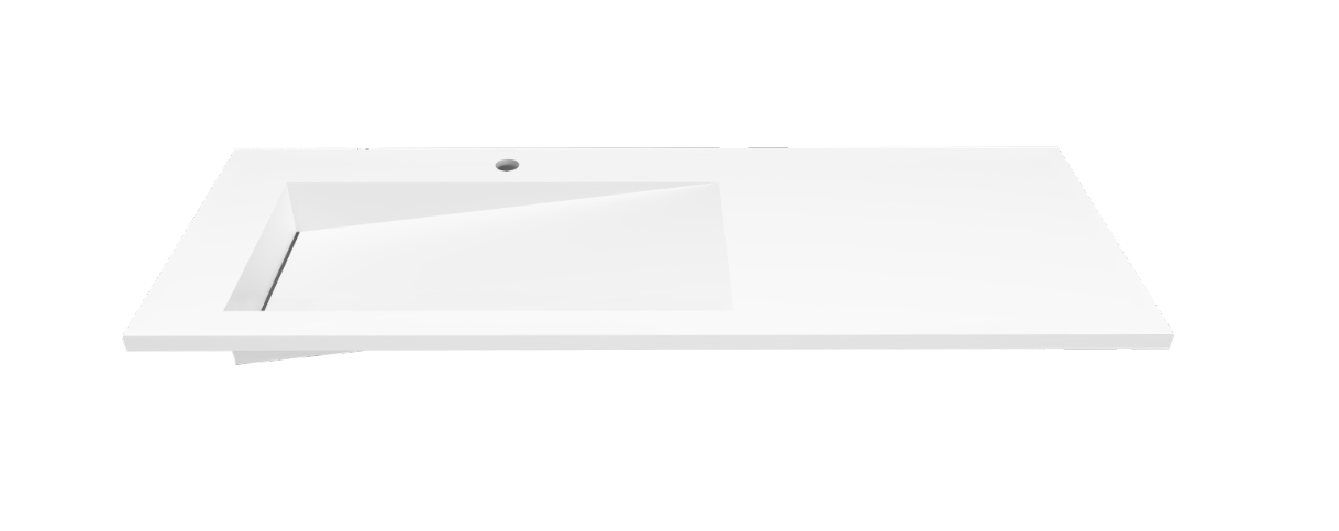 Innowacyjna umywalka posiadająca nowoczesny odpływ liniowy boczny, cienka biała umywalka wyposażona jest w misę boczną oraz funkcjonalny blat. Sprawdzi się świetnie do szafki łazienkowej lub na blacie. To wybór miłośników trendów aranżacji wnętrz oraz architektów, zastosowany do domowego SPA, pokoju kąpielowego czy typowej łazienki.