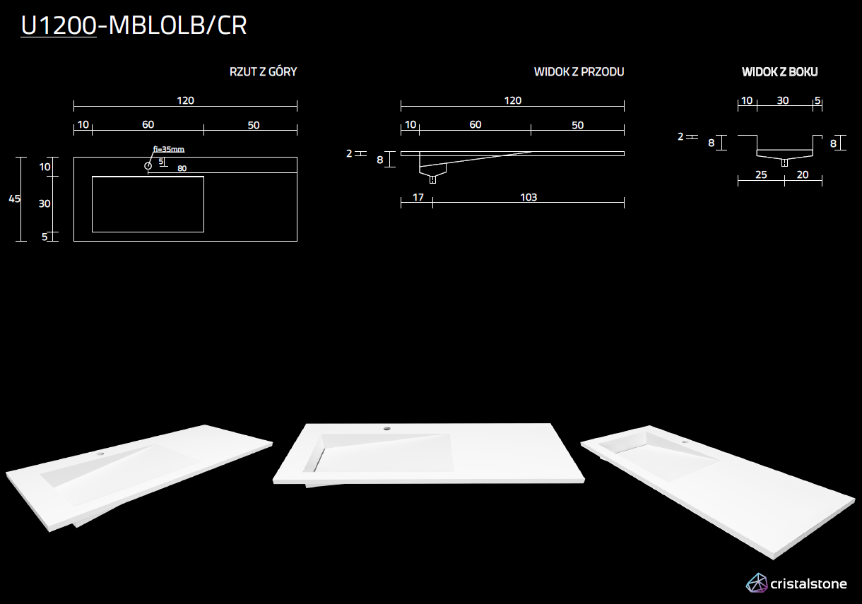 Cristalone Linea Ideal umywalka meblowa z odpływem liniowym