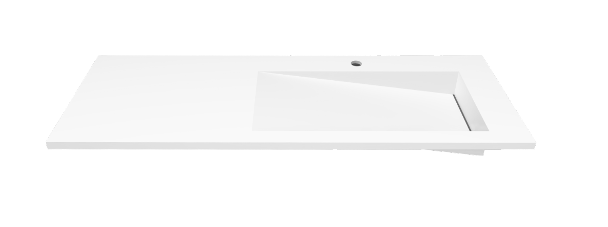Innowacyjna umywalka posiadająca nowoczesny odpływ liniowy boczny, cienka biała umywalka wyposażona jest w misę boczną oraz funkcjonalny blat. Sprawdzi się świetnie do szafki łazienkowej lub na blacie. To wybór miłośników trendów aranżacji wnętrz oraz architektów, zastosowany do domowego SPA, pokoju kąpielowego czy typowej łazienki.