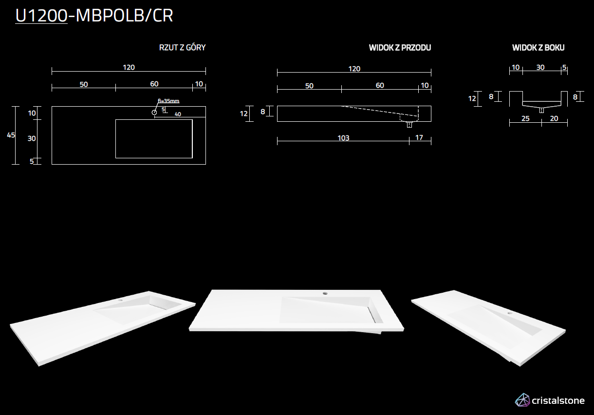 Cristalone Linea Ideal umywalka meblowa z odpływem liniowym