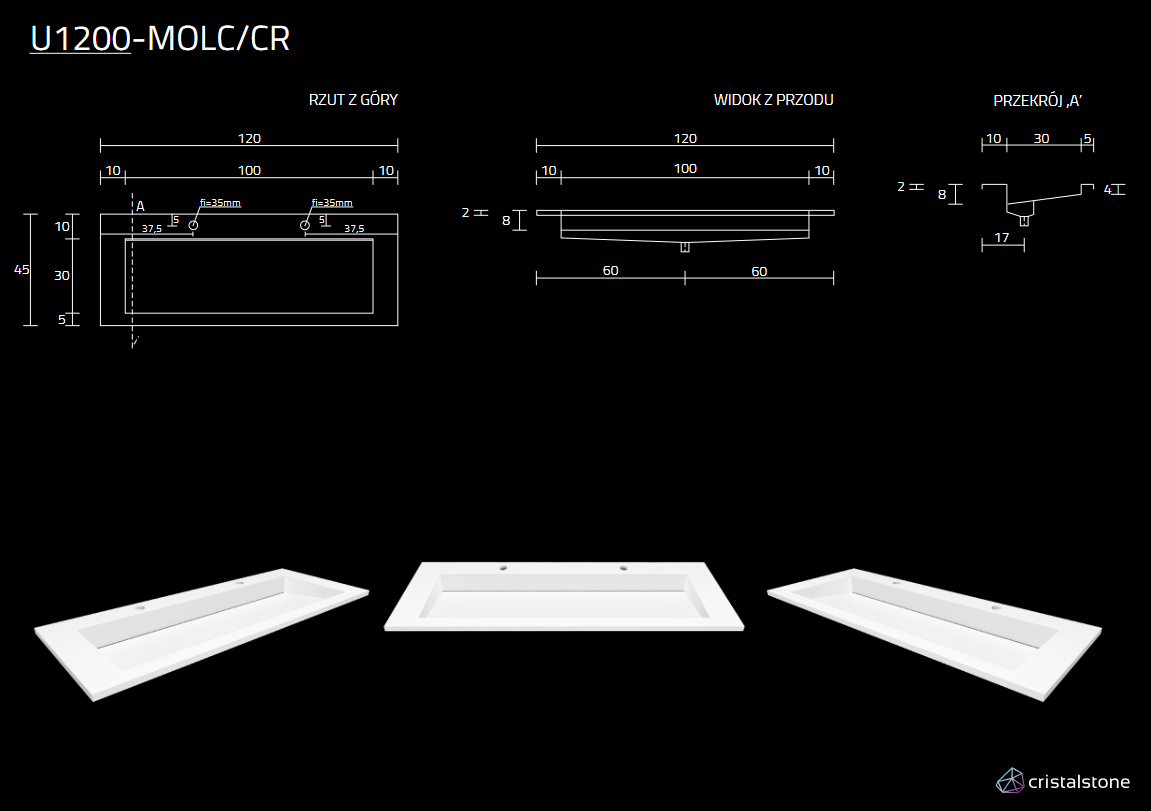 Cristalone Linea Ideal umywalka meblowa z odpływem liniowym