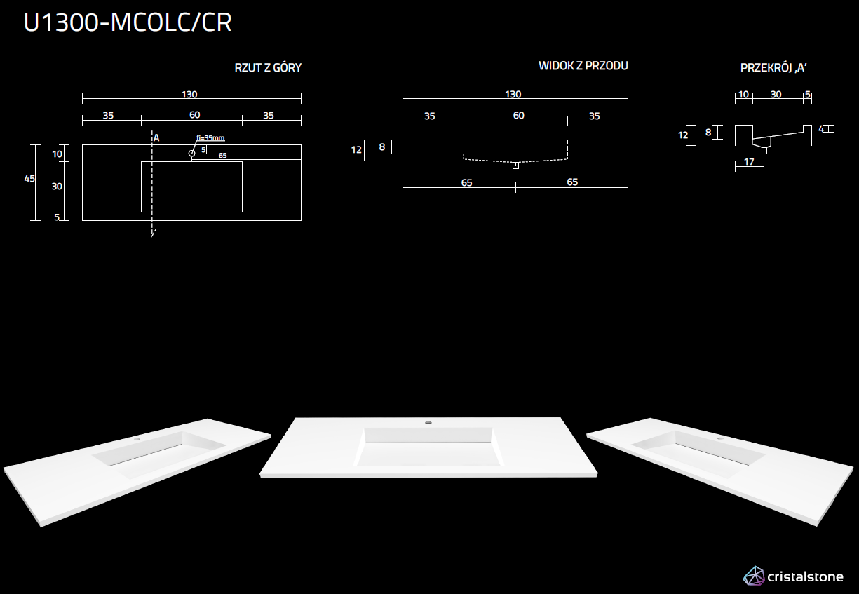 Cristalone Linea Ideal umywalka meblowa z odpływem liniowym