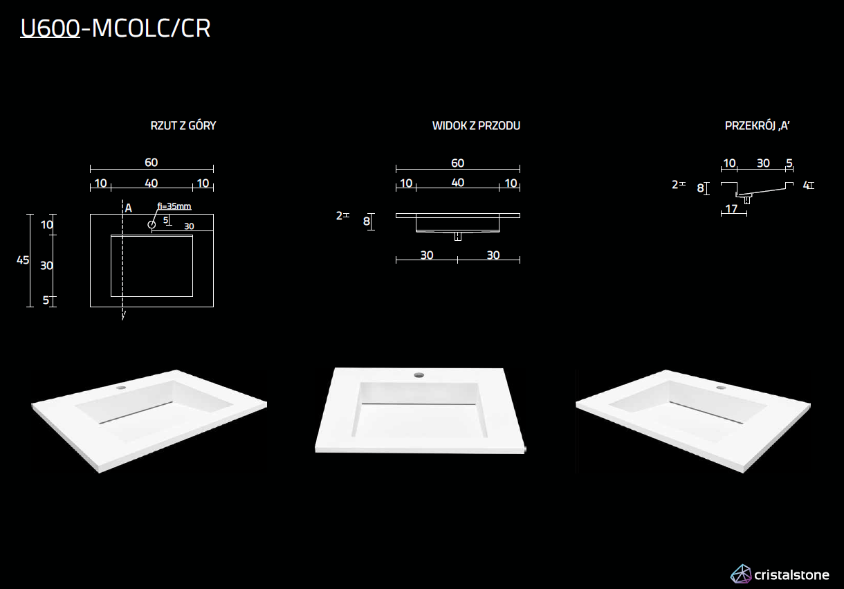 Cristalone Linea Ideal umywalka meblowa z odpływem liniowym