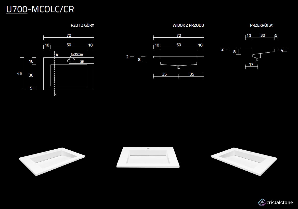 Cristalone Linea Ideal umywalka meblowa z odpływem liniowym