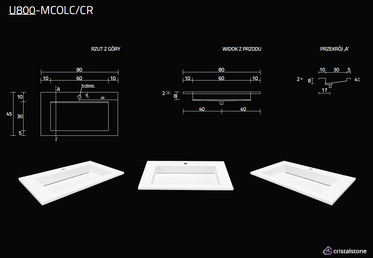 Cristalone Linea Ideal umywalka meblowa z odpływem liniowym