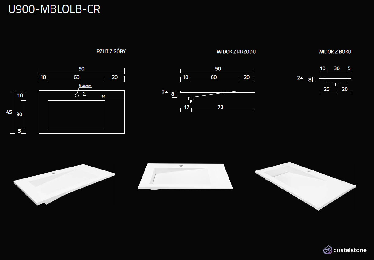Cristalone Linea Ideal umywalka meblowa z odpływem liniowym
