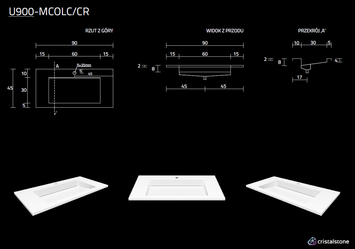 Cristalone Linea Ideal umywalka meblowa z odpływem liniowym