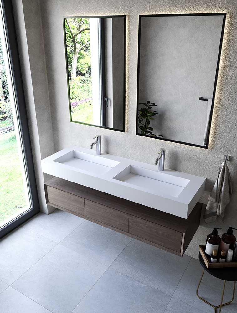 Najwyższej jakości nowoczesny konglomerat łączący cechy ceramiki i kompozytów sanitarnych. Materiał, który wygląda i zachowuje się w dotyku jak ceramika, jednak jest od niej bardziej wytrzymały mechanicznie.