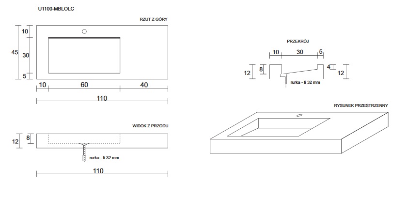 Opinie o: Cristalstone Linea Ideal umywalka z blatem lewa 110x45 cm z odpływem liniowym biały satynowy mat U1100-MBLOLC