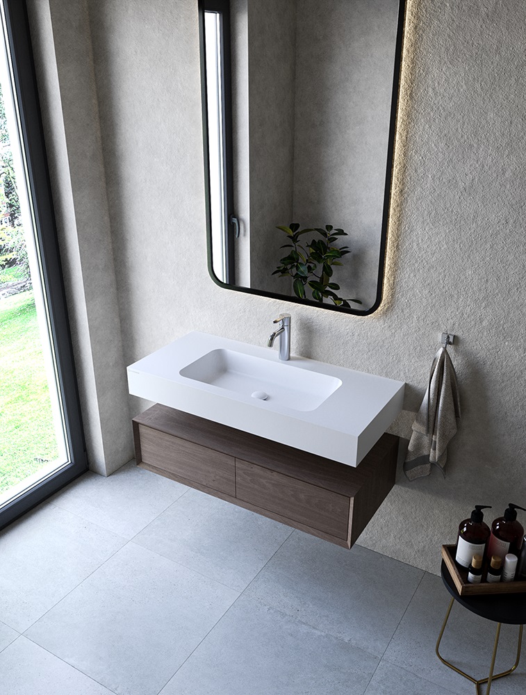 Najwyższej jakości nowoczesny konglomerat łączący cechy ceramiki i kompozytów sanitarnych. Materiał, który wygląda i zachowuje się w dotyku jak ceramika, jednak jest od niej bardziej wytrzymały mechanicznie.