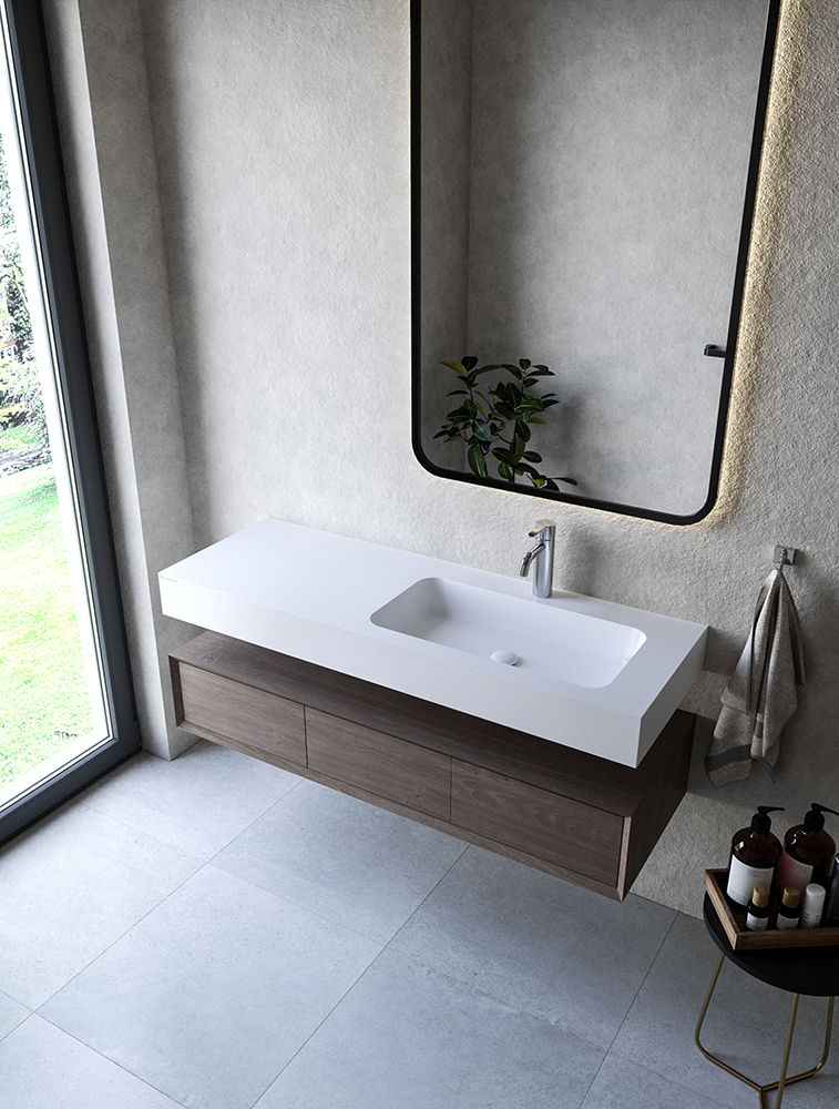 Najwyższej jakości nowoczesny konglomerat łączący cechy ceramiki i kompozytów sanitarnych. Materiał, który wygląda i zachowuje się w dotyku jak ceramika, jednak jest od niej bardziej wytrzymały mechanicznie.