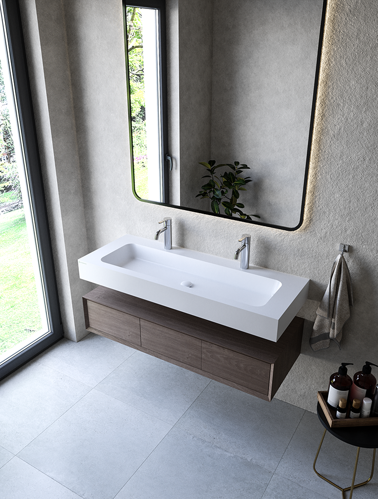 Najwyższej jakości nowoczesny konglomerat łączący cechy ceramiki i kompozytów sanitarnych. Materiał, który wygląda i zachowuje się w dotyku jak ceramika, jednak jest od niej bardziej wytrzymały mechanicznie.
