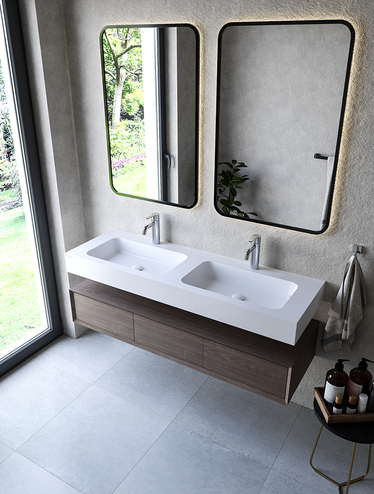 Najwyższej jakości nowoczesny konglomerat łączący cechy ceramiki i kompozytów sanitarnych. Materiał, który wygląda i zachowuje się w dotyku jak ceramika, jednak jest od niej bardziej wytrzymały mechanicznie.