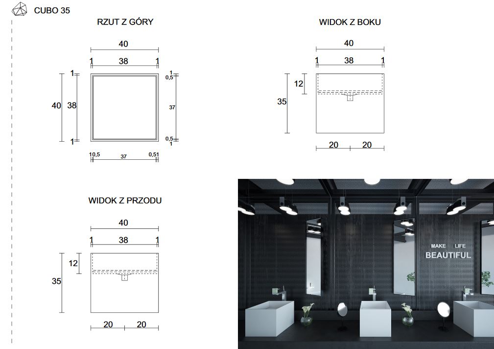 Cristalstone Vidrio Cubo umywalka stawiana na blat