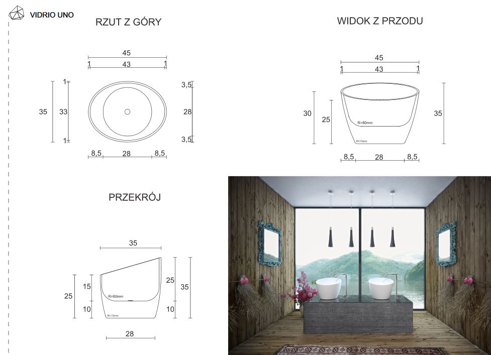 Cristalstone Vidrio Uno umywalka stawiana na blat