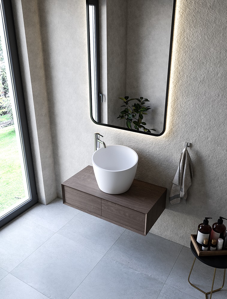 Najwyższej jakości nowoczesny konglomerat łączący cechy ceramiki i kompozytów sanitarnych. Materiał, który wygląda i zachowuje się w dotyku jak ceramika, jednak jest od niej bardziej wytrzymały mechanicznie.