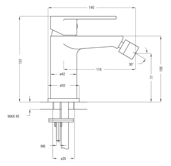 Stojąca bateria bidetowa jest wysokiej klasy produktem, który nada łazience subtelnego i praktycznego znaczenia. Jej matowe wykończenie podkreśla charakterystyczne dla serii Alpinia obłe linie oraz płaską powierzchnię dźwigni i wylewki. Końcówka wylewki jest ruchoma, co w rezultacie pozwala skierować strumień wody w wybranym kierunku. To jednouchwytowa, mieszaczowa bateria, która nie tylko ma estetyczny wygląd, także jest niezwykle funkcjonalnym rozwiązaniem. Dodatkowo została wyposażona w aerator napowietrzający strumień oraz korek click-clack. Kompozycje zapakowano w ekologiczne opakowanie, które sprzyja środowisku.