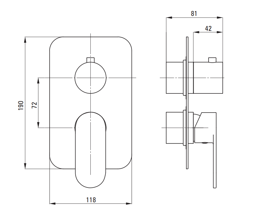 Do kompletowania z Deante BOX element podtynkowy mieszaczowy z przełącznikiem natrysku BXYX44M