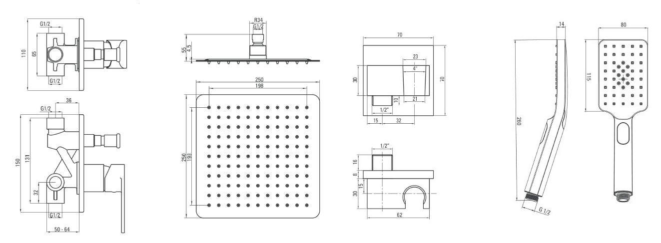 Deante Alpinia zestaw prysznicowy podtynkowy z deszczownicą