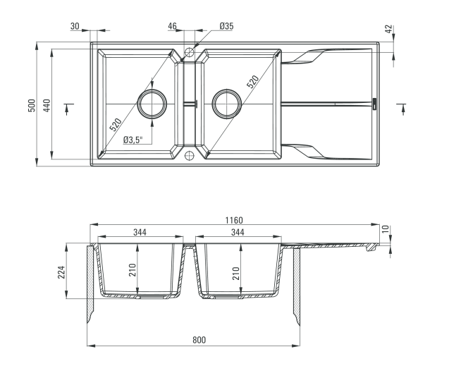 Deante Andante Zlewozmywak 2 komory z ociekaczem