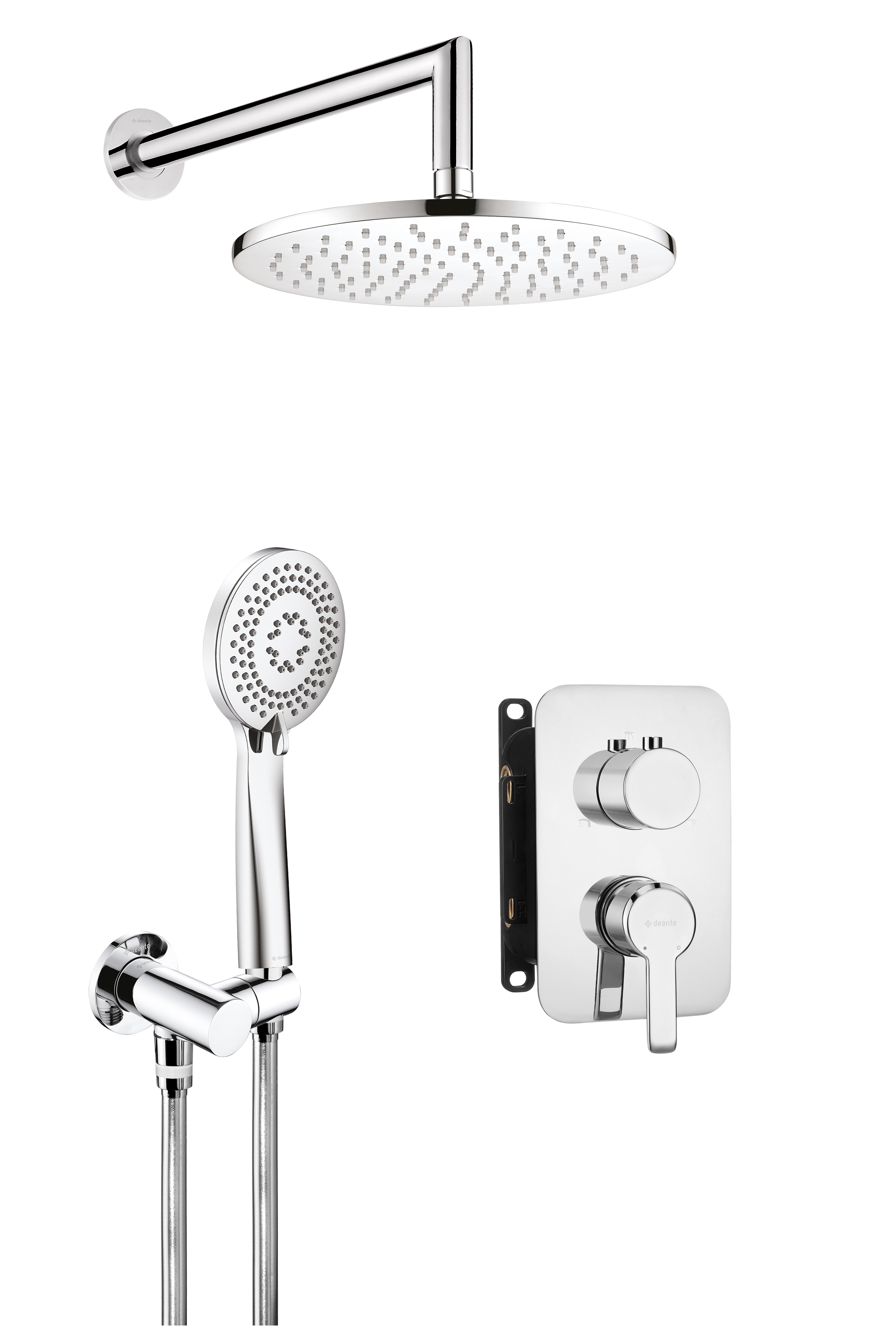 Zestaw prysznicowy składa się z BOXa mieszaczowego, deszczownicy i słuchawki wraz z uchwytem i wężem.