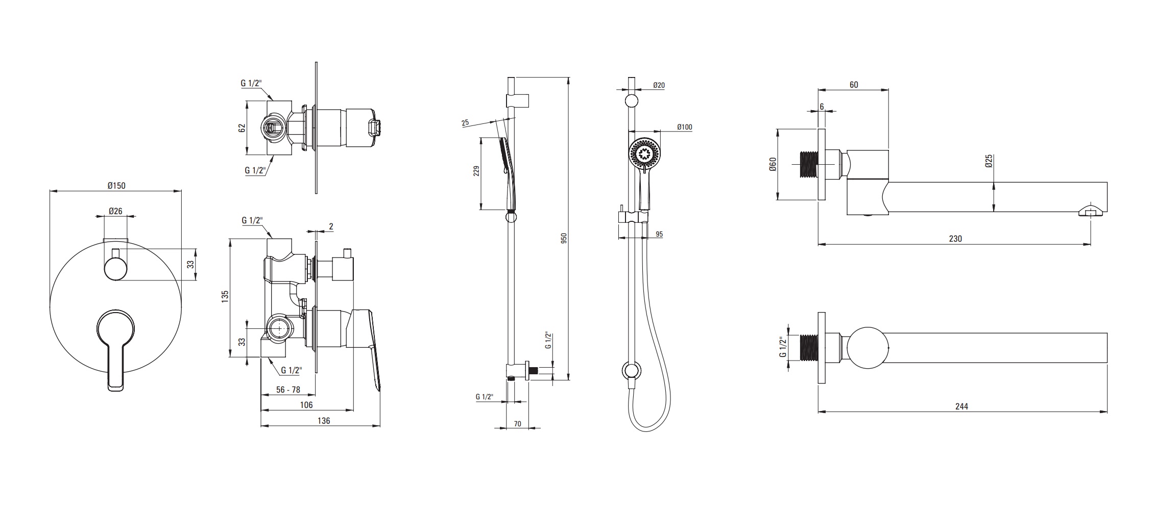 Deante Arnika komplet wannowy podtynkowy