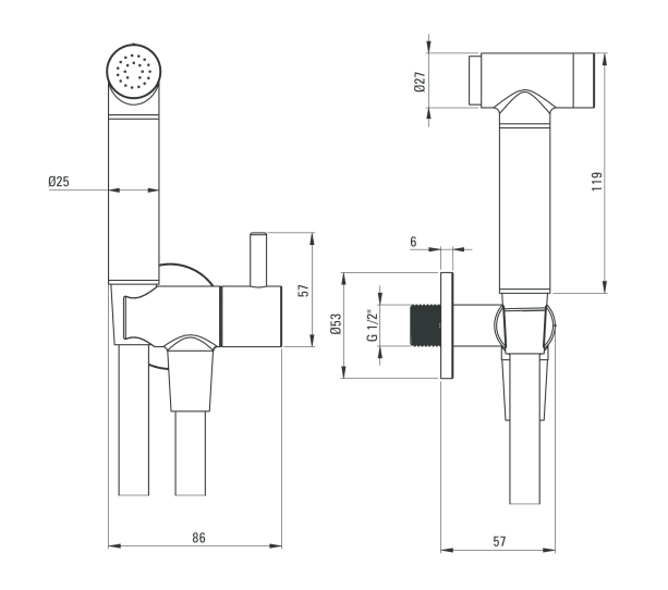 Deante Bidetta zestaw bidetowy z przyłączem kątowym i uchwytem na słuchawkę