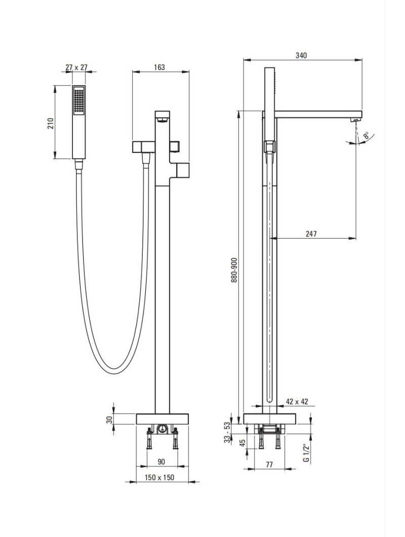 Deante Blur bateria wannowa wolnostojąca