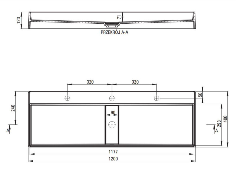Największy model w szarym kolorze zachwyca przestronnością i nowoczesnym wyglądem. Jej szerokość 1200 mm pozwala na komfortowe użytkowanie przez dwie osoby, co czyni ją doskonałym wyborem do przestronnych łazienek rodzinnych. Granitowa powierzchnia jest niezwykle trwała, odporna na zarysowania i wysokie temperatury, a dodatkowe właściwości antyseptyczne, zapewnione przez jony srebra, gwarantują higieniczne użytkowanie. Hydrofobowa powłoka odpycha wodę i ogranicza powstawanie zacieków, co pozwala cieszyć się nieskazitelnym wyglądem przez lata. Może być zaprojektowana zarówno z myślą o jednej baterii, jak i z dwiema. Maskownica odpływu estetycznie ukrywa elementy instalacyjne, nadając umywalce nowoczesny i minimalistyczny charakter.
