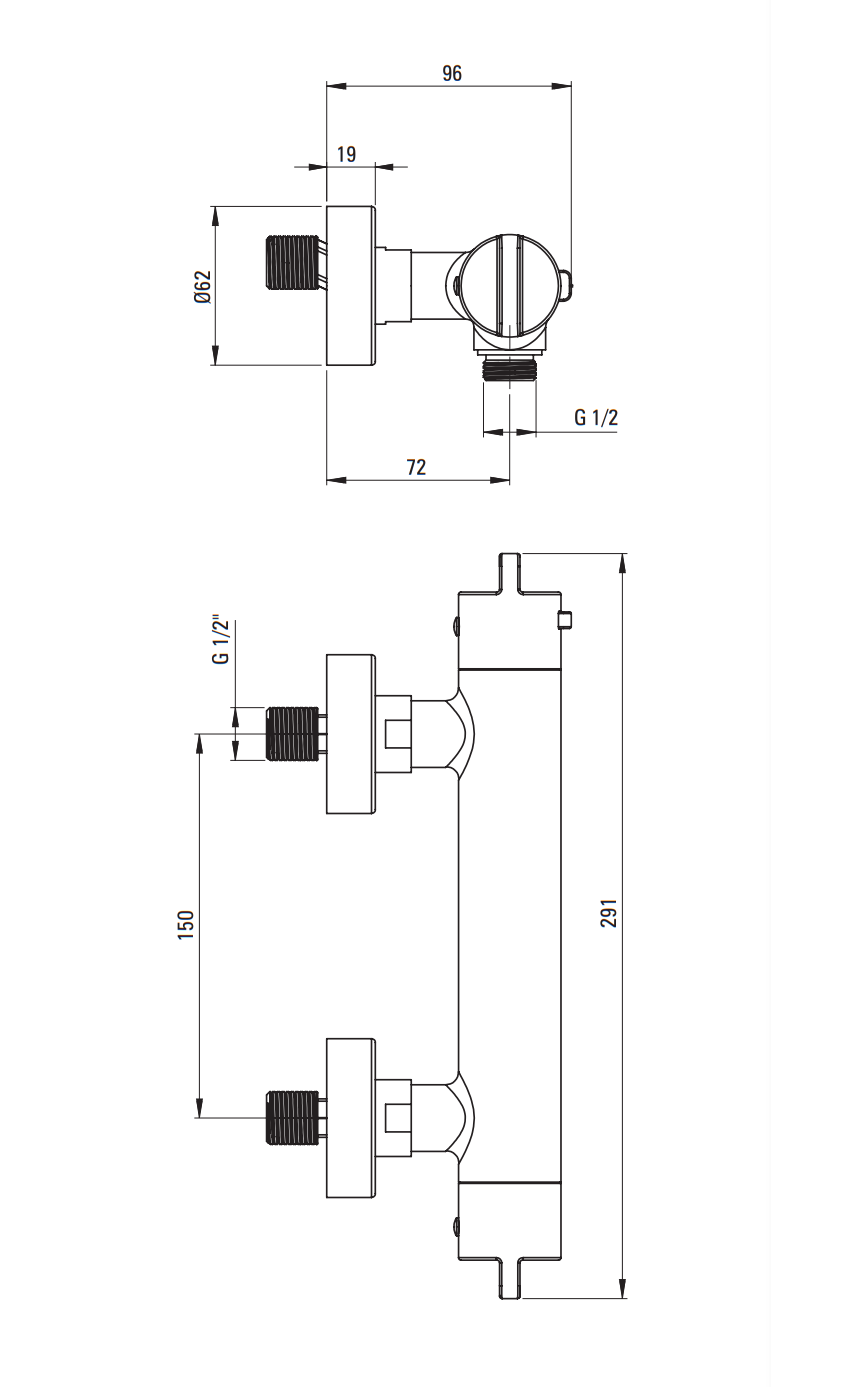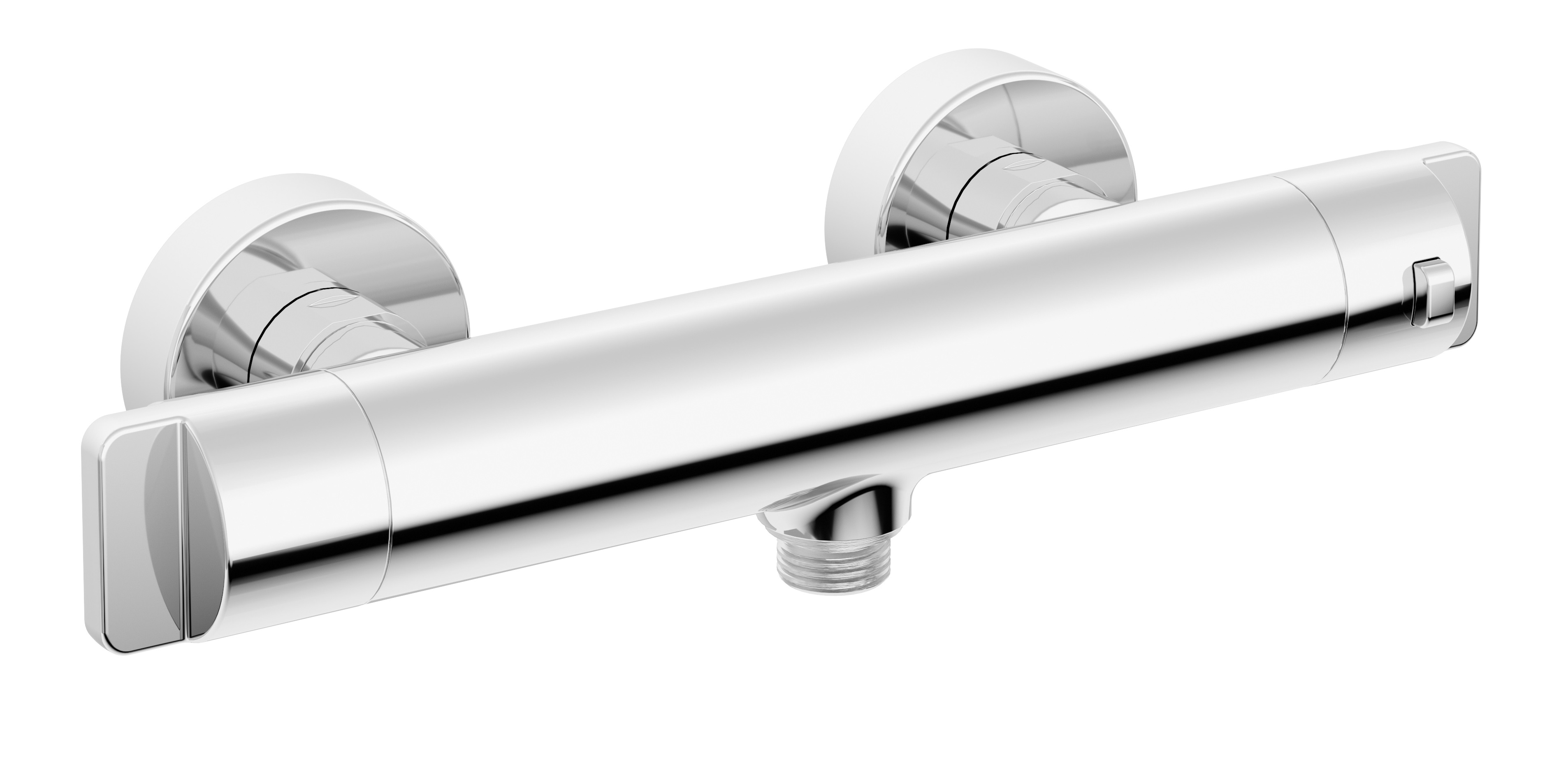 Bateria natryskowa z termostatem pozwala na utrzymanie stałej, komfortowej dla ciała temperatury pod prysznicem. Wykonana została z wysokiej jakości mosiądzu i wyposażona w zawory zwrotne. Bateria posiada blokadę temperatury 38 stopni, co jest szczególnie przydatne, gdy z natrysku korzystają małe dzieci lub seniorzy. Ponadto bateria posiada wyjątkowo ergonomiczne pokrętła, które ułatwiają regulację wypływu, wody a przy tym stanowią designerski element dekoracyjny. Całość wykończona w błyszczącym chromie pięknie odbija światło i pasuje do każdych aranżacji.