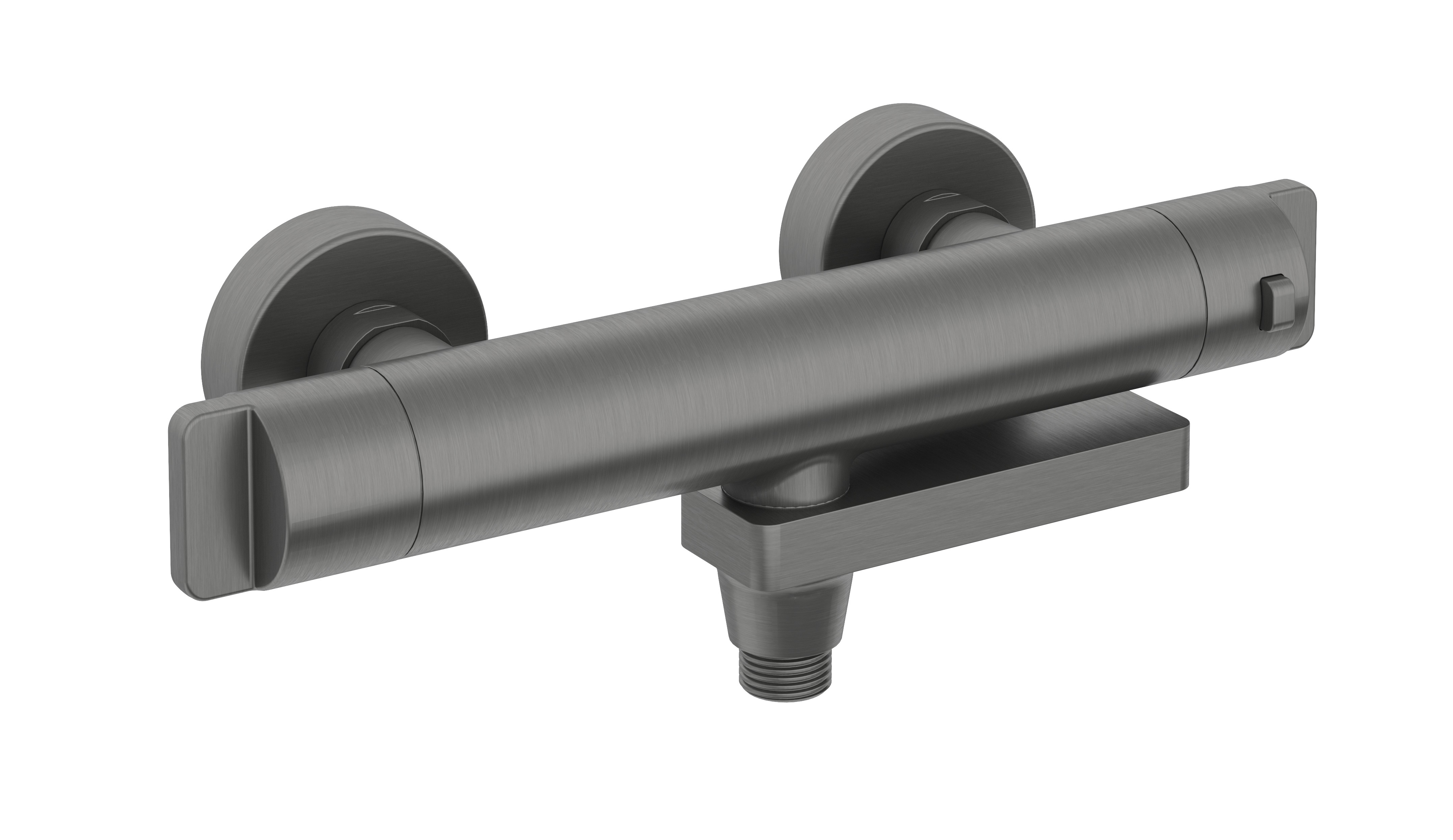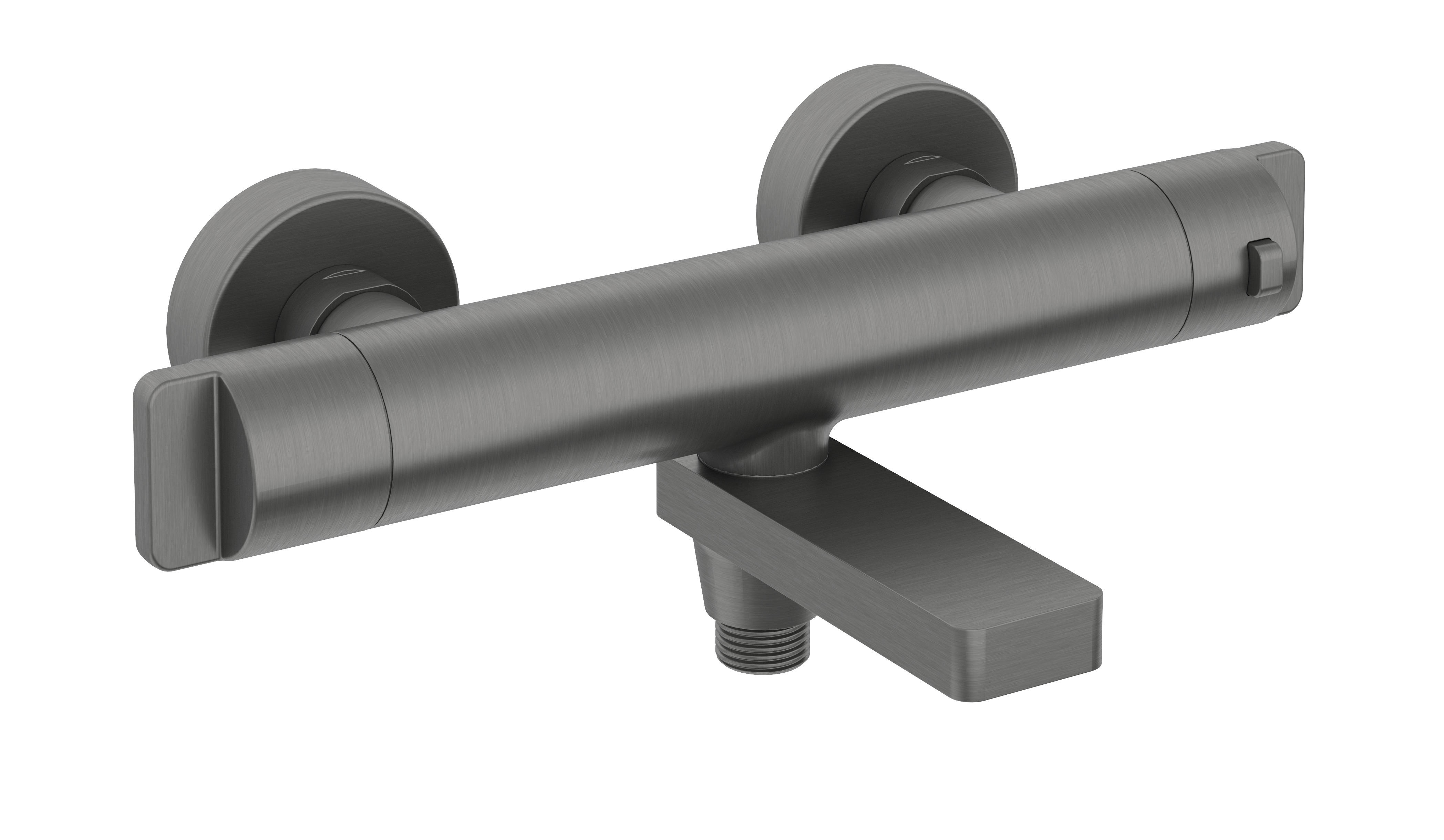 Bateria termostatyczna wannowa to model łączący wyjątkowy design z funkcjonalnością.. Składana wylewka znacznie poprawia komfort kąpieli i jednocześnie pełni funkcje przełącznika strumienia między baterią a słuchawką. Produkt wyposażony jest w blokadę komfortowej temperatury 38˚C, która zapobiega poparzeniom. Ponadto bateria termostatyczna posiada wyjątkowo ergonomiczne uchwyty, gwarantujące bezproblemową regulację strumienia wody. Bateria wykończona jest w intrygującym kolorze Titanium, który stanowi kompromis między szarością, czernią a subtelnym odcieniem brązu.
