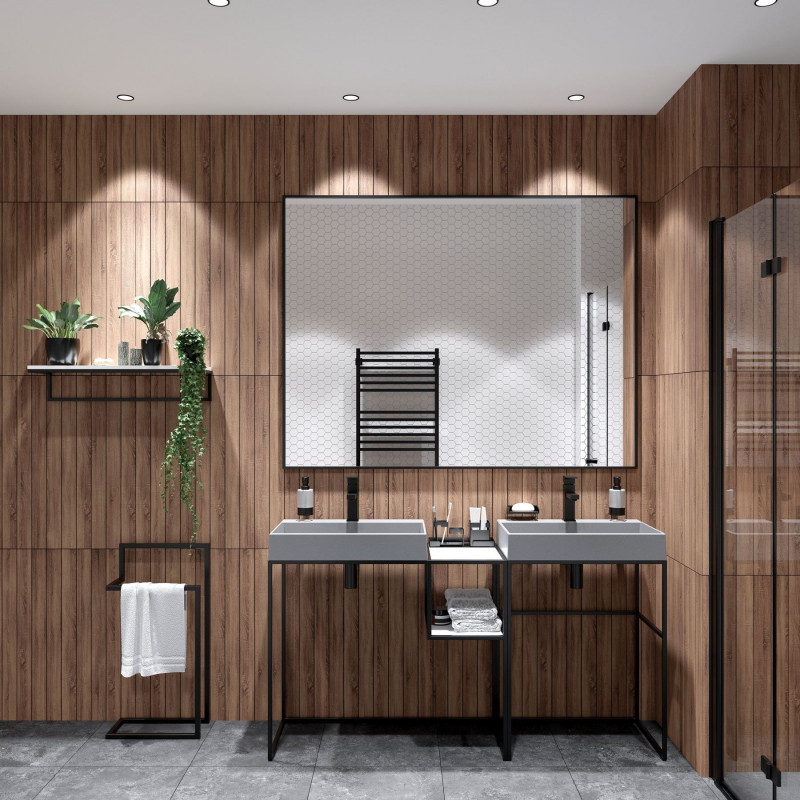 Dopełnieniem kolekcji Correo jest modułowa konsola łazienkowa, skrojona idealnie pod umywalki z tej samej serii. Stalowa konstrukcja, łącząca wytrzymałość z lekką formą stanowi doskonałą alternatywę dla klasycznej szafki pod umywalkę. Wersja podstawowa to konsola z umywalką solo, lub z kamiennymi półkami w trzech oryginalnych kolorach: gładkim białym, czarnym lub strukturalnym szarym. Jeżeli wielkość pomieszczenia na to pozwoli, konsolę można rozbudować o dodatkowe moduły: węższy 20 cm lub szerszy 30 cm. Poszczególne elementy można łączyć według własnego uznania i fantazji, co pozwala uzyskać rozmaite rezultaty stylistyczne. Specjalna konstrukcja węższego słupka umożliwia powieszenie go nawet na ścianie. Konsola nie posiada uciążliwych w pielęgnacji zakamarków, więc jest niezwykle łatwa w utrzymaniu czystości.
