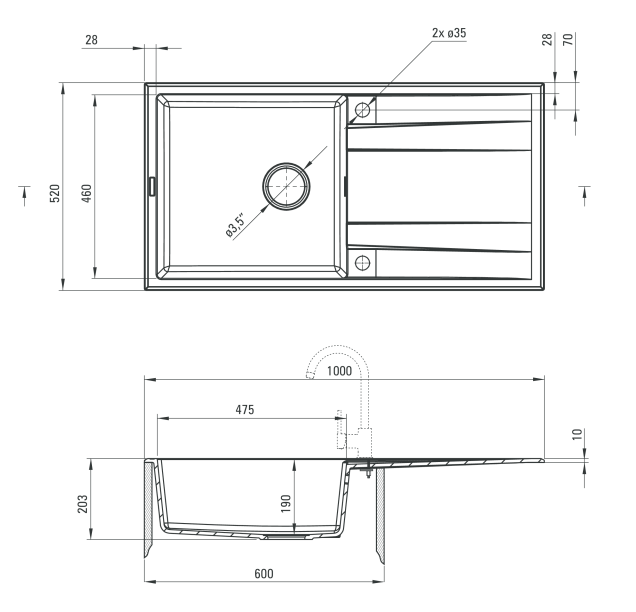 Deante Eridian Zlewozmywak 1-komorowy z ociekaczem