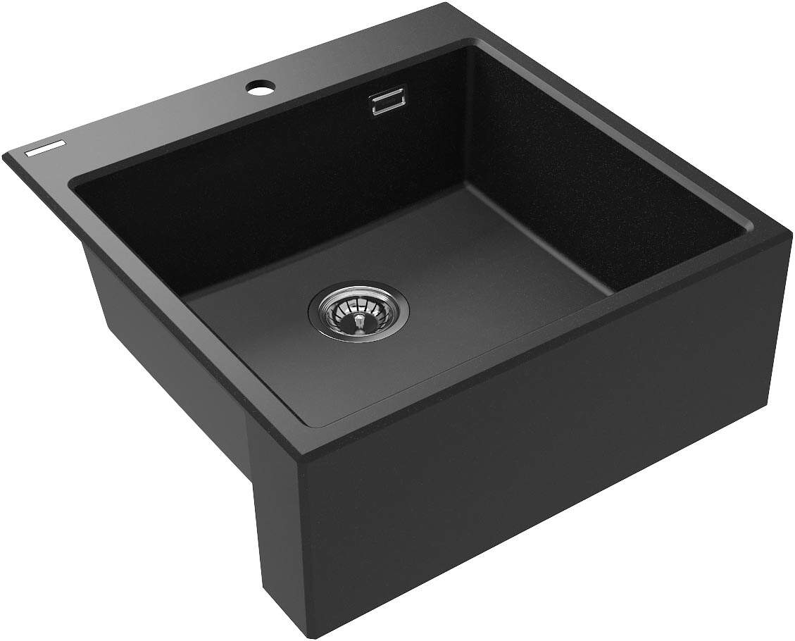 Farmerski zlewozmywak Eridan zaskakuje wyjątkowym designem i funkcjonalnością. Posiada fartuch, czyli wychodzący poza blat front zlewu, który pozwala stanąć bliżej komory i chroni przed zabrudzeniami. Zlewozmywak wykonany jest z granitu, który cechuje się dużą odpornością na wysokie temperatury, szok termiczny, zarysowania i odbarwienia. Zlewozmywak farmerski coraz częściej wykorzystuje się w nowoczesnych i minimalistycznych aranżacjach.