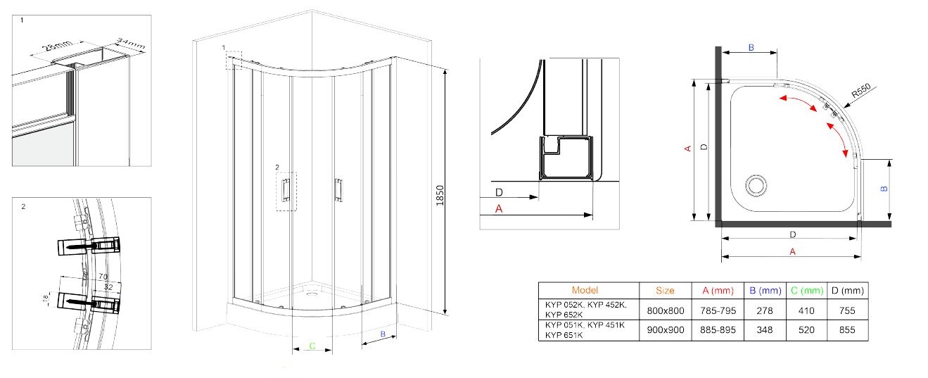 Kabina dostępna w wykończeniach szkła: transparentne,grafitowe oraz szronione.
