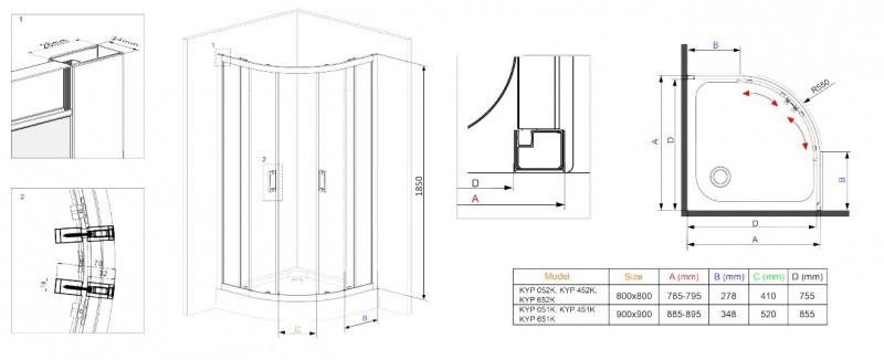 Kabina dostępna w wykończeniach szkła: transparentne,grafitowe oraz szronione.
