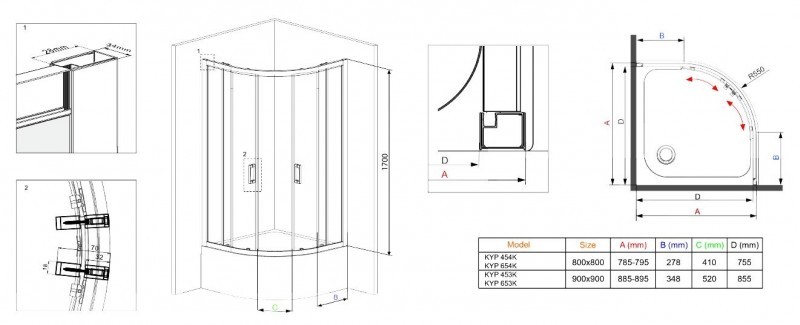 Kabina dostepna w dwóch wykończeniach szkła: grafitowy oraz szronione.
