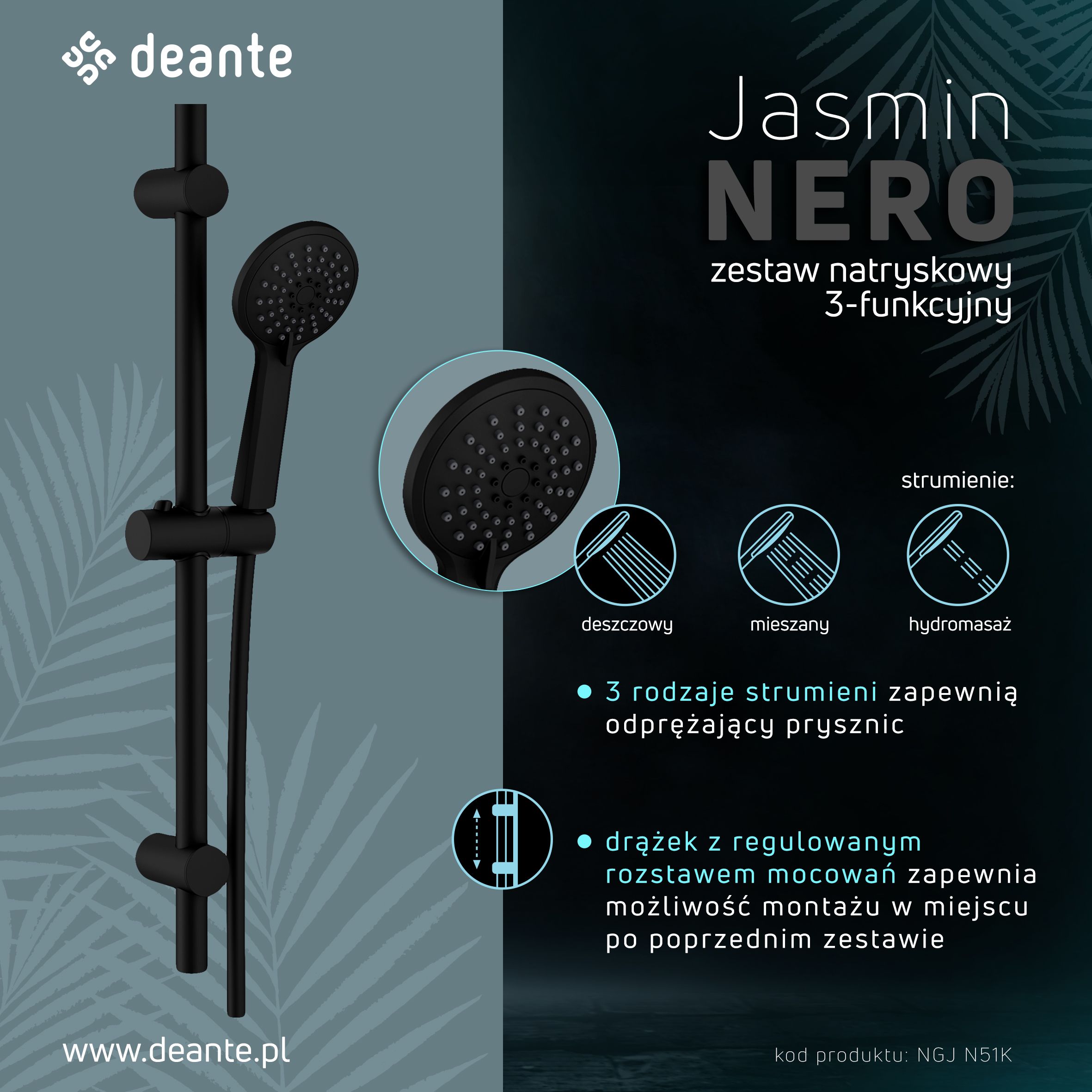 Deante Jasmin Nero zestaw natryskowy 3-funkcyjny z drążkiem