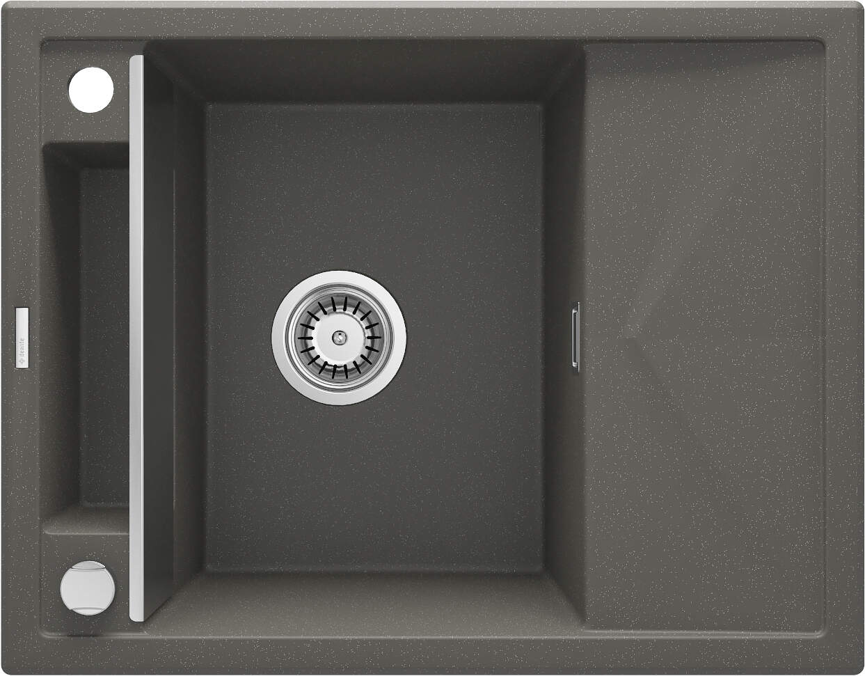 Granitowy zlewozmywak Magnetic posiada magnetyczne właściwości, które pozwalają na szybkie zorganizowanie jego przestrzeni pomocnymi akcesoriami - bez dodatkowych mocowań. Jest to model z jedną pojemną komorą oraz praktycznym ociekaczem z motywem jodełki, który przyspiesza odprowadzanie wody. Zlewozmywak wyposażony został w magnesy, dzięki którym na bok komory nałożyć można stalową maskownicę. Elegancka maskownica oddziela komorę od bocznej półki, która posłuży nam np. na osuszanie sztućców. Zamiast maskownicy do zlewozmywaka można zamontować koszyczki oraz reling i haczyk, które są do dokupienia w ofercie Deante.