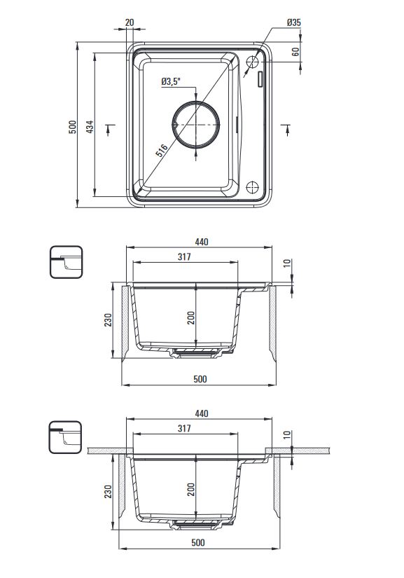 • Sposób montażu: wpuszczany, podblatowy
